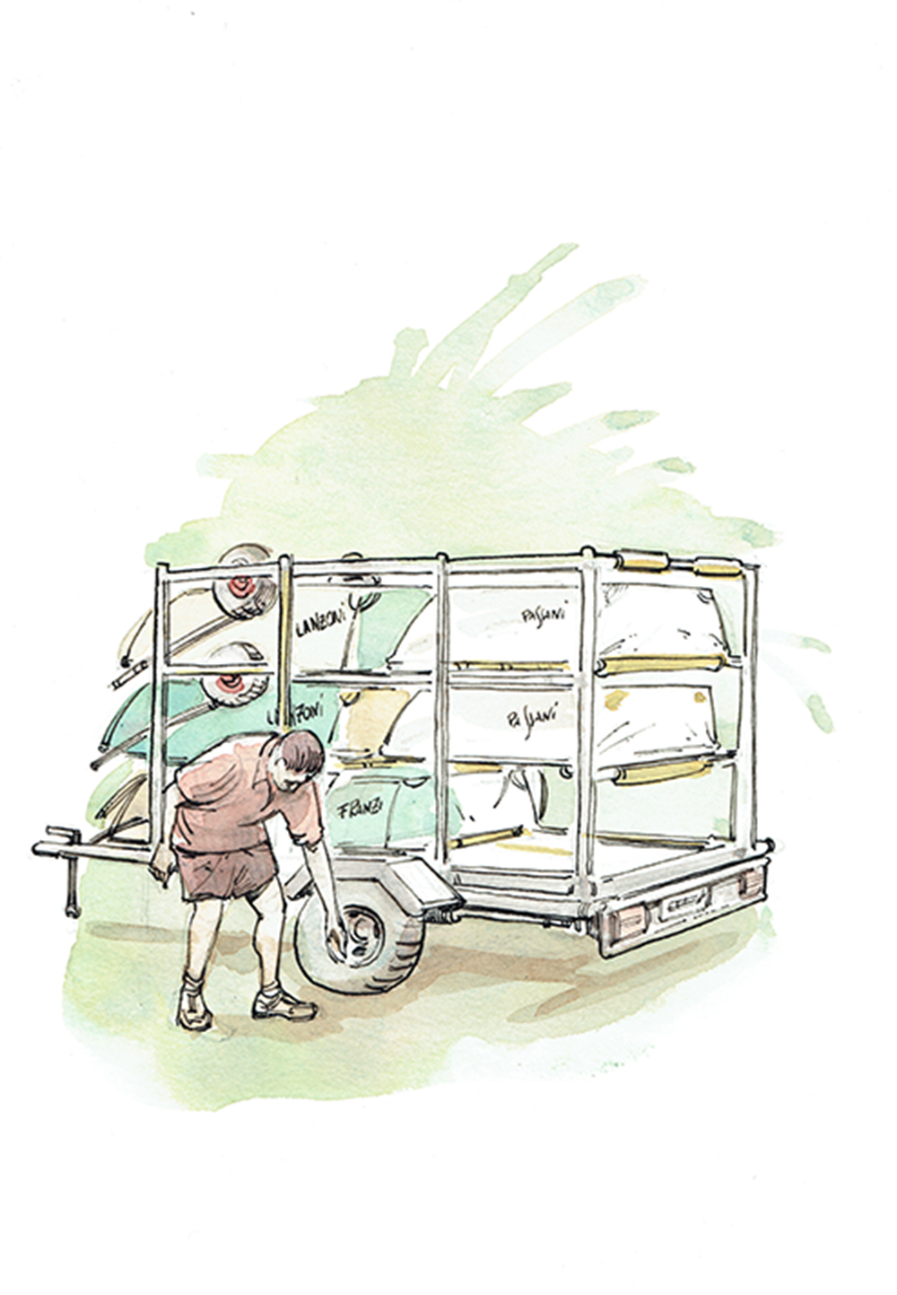 Dal 2000 al 2005 Enrico accompagna la squadra con mezzi di fortuna o rimediati. Con la crescita dell’attività si decide di strutturare il parco mezzi, acquistando il leggendario “Pepo,” il furgone bianco. Il primo davvero del 3V, intestato al 3V e, proprio come il circolo, incredibilmente coriaceo.