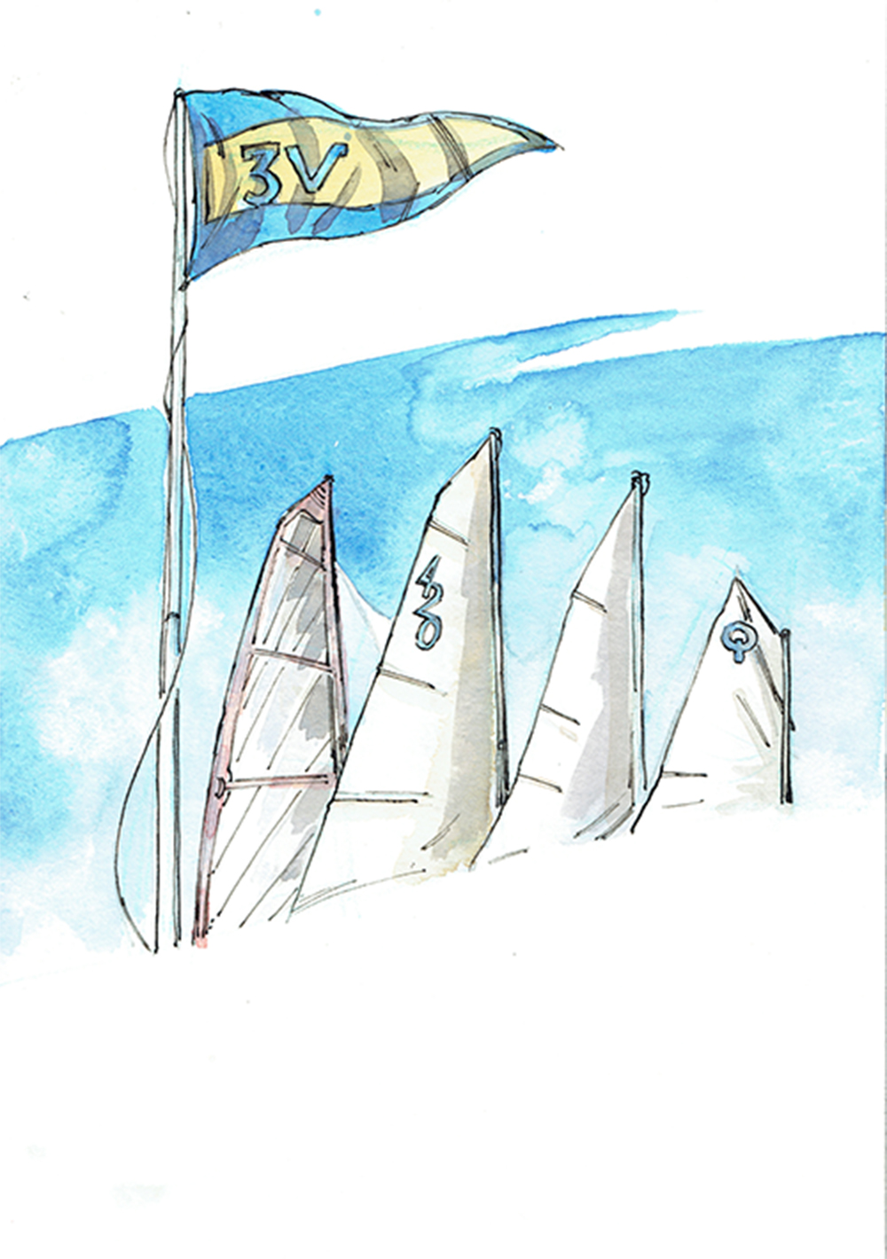 Hanno fatto la loro bella parte anche i soci. Appassionati e primi tifosi, spesso genitori o amici dei ragazzi dell’agonistica. Possessori di barche, amatori o agonisti. Anima pulsante del movimento di base del 3V. Il sorriso davanti all’ultima birra di giornata dopo una bella uscita in barca. La mano che ti serve a progettare quella o questa cosa… Molti di loro rappresentano anche la leggendaria flotta 302 dell’Hobie Cat, altri rappresentano solo il 3V ma tutti loro sono indispensabili a far sventolare la bandiera.