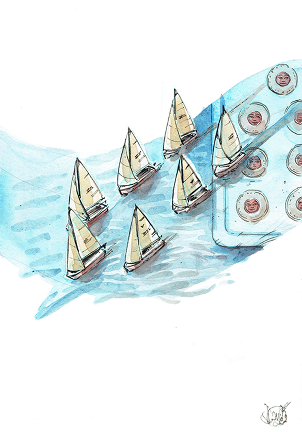 Il Settebello… La barca su cui Enrico impara a navigare è il Vaurien, una classe doppia molto diffusa negli anni 70, costruita in legno e con la chiglia a spigolo. Il talento di Enrico, unitamente all’accoglienza del circolo e di Gigi e Carla, attraggono altri equipaggi di Vaurien che vanno a formare una squadra affiatata conquistando rapidamente le prime posizioni a tutte le regate di rilievo. La squadra verrà soprannominata il “Settebello” essendo formata da sette equipaggi.