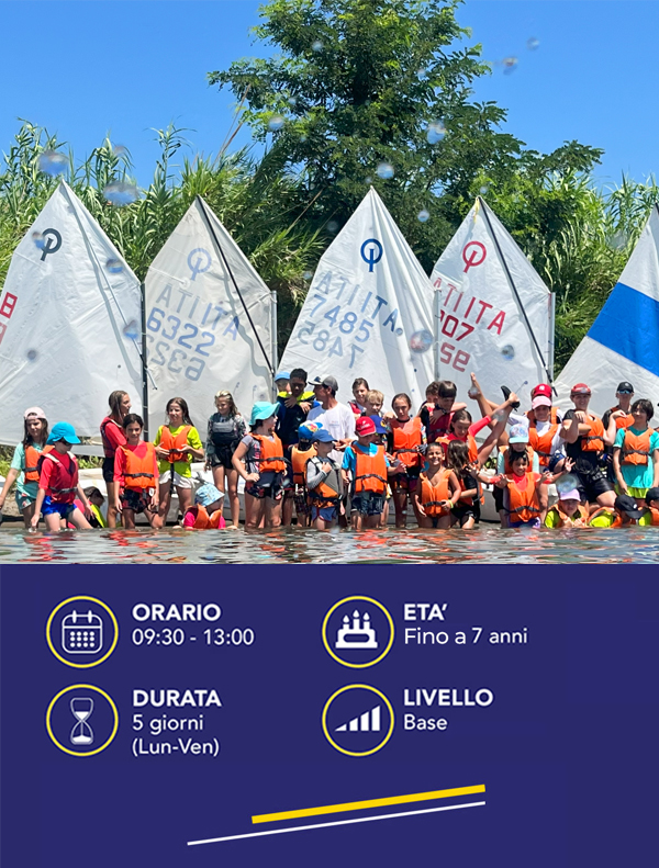Età: Riservato ai bambini dai 6 anni compiuti a 7 anni alle prime esperienze con l’acqua e la vela.